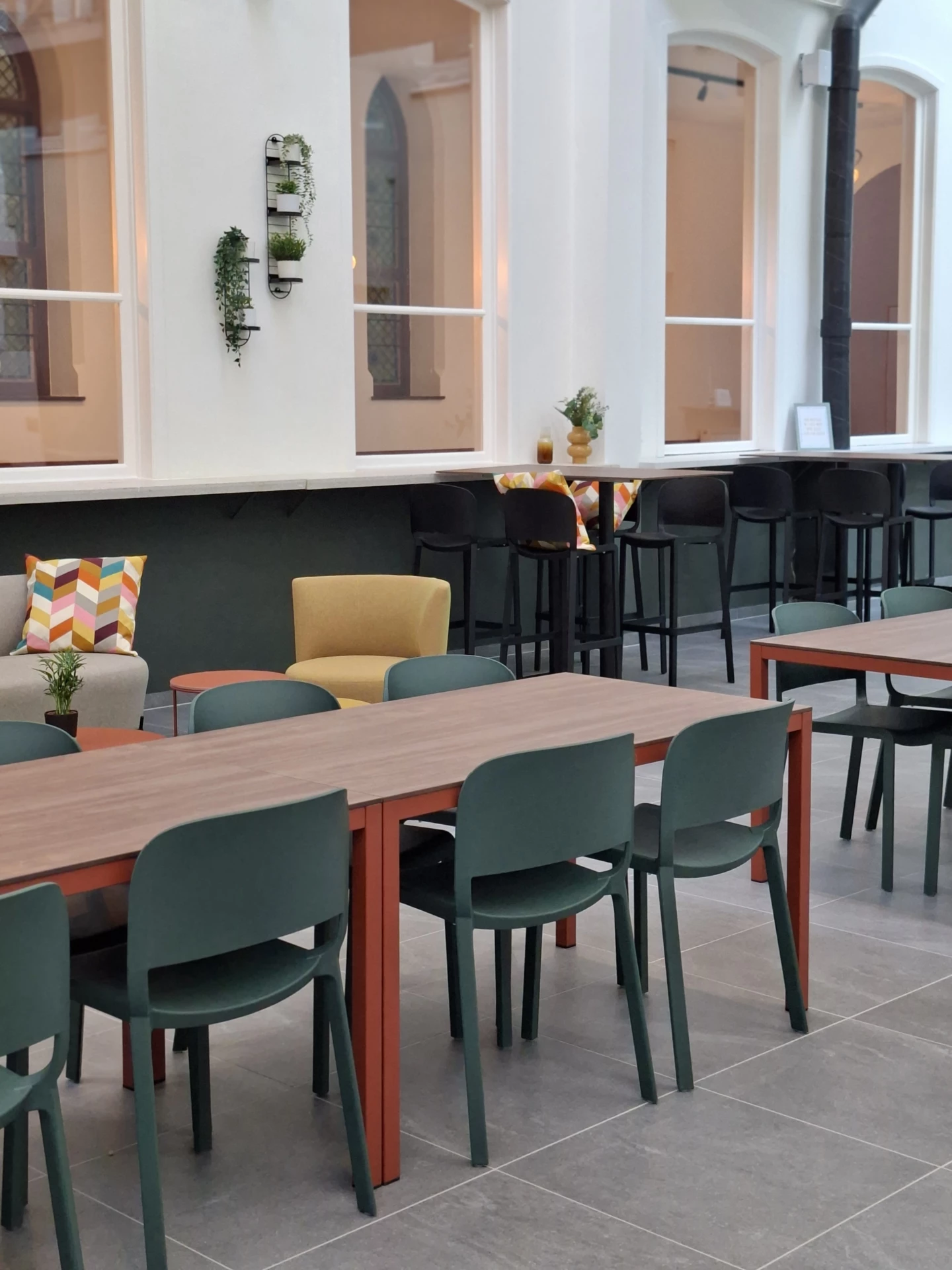 In Wetteren opende Sint-Lodewijk recent De Bron, een nieuwe ontmoetingsruimte die ontworpen is met oog voor sfeer, comfort en multifunctionaliteit. Met een warm en speels kleurenpalet als uitgangspunt biedt De Bron een uitnodigende plek voor pauzemomenten, gesprekken, groepsactiviteiten en ontspanning.